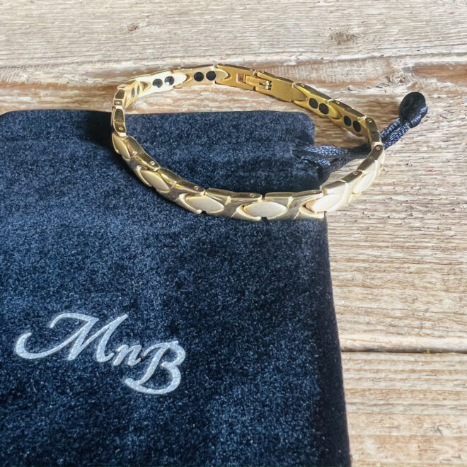 ELEGANT TITANIUM MAGNETIC BRACELET: Beautifully designed hypoallergenic gold coloured titanium magnetic bracelet.