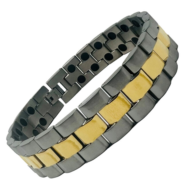 ELEGANT TITANIUM MAGNETIC BRACELET: Beautifully designed hypoallergenic two tone silver and gold coloured titanium magnetic bracelet.